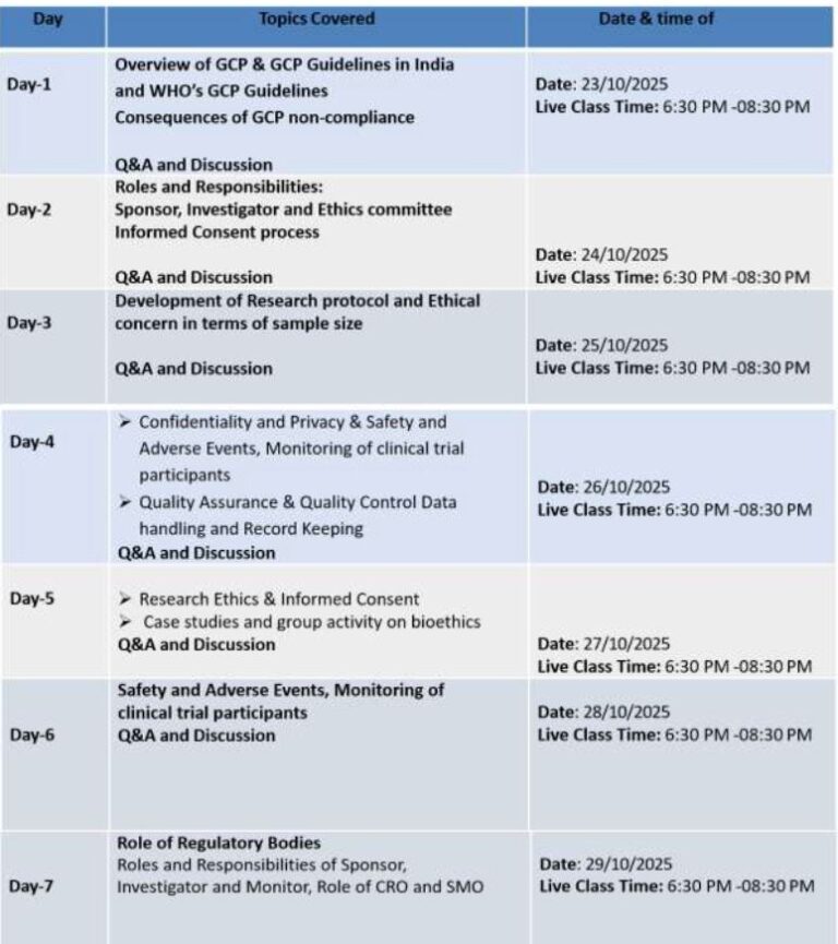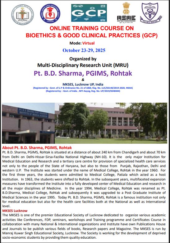 GCP training course is now essential for all PG students and teaching faculties as per recent NMC Guidelines.